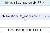 Public Types inherited from bb::Relation< to_radixImpl< FF > > | |