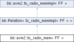 Public Types inherited from bb::Relation< to_radix_memImpl< FF > > | |